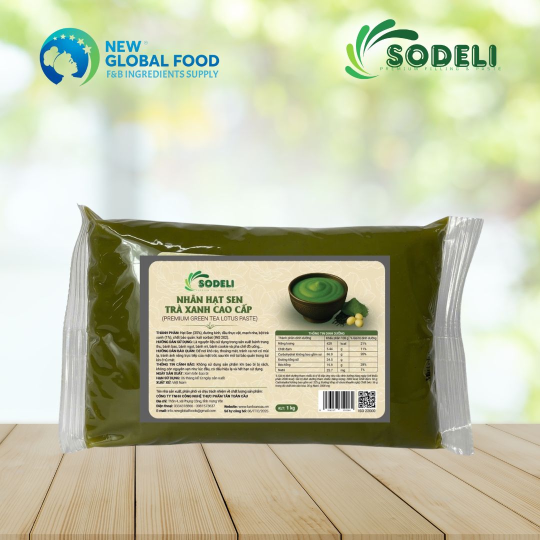 Nhân hạt sen trà xanh SODELI phù hợp cho nhiều loại bánh, từ truyền thống đến hiện đại.